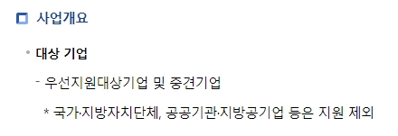 지원 대상 기업 종류 명시 (우선지원대상기업, 중견기업)
