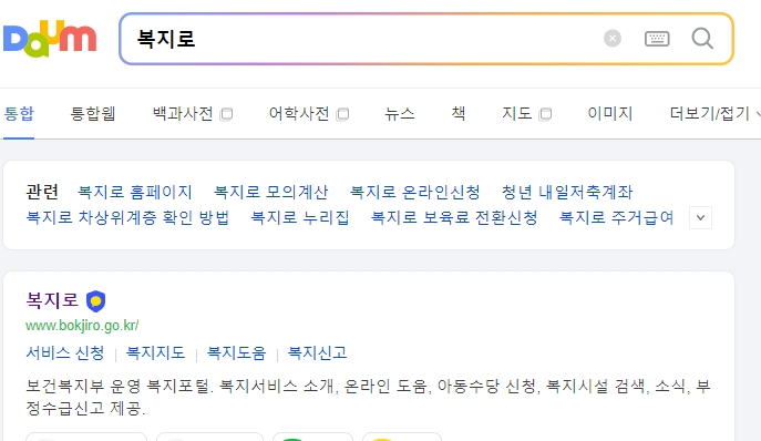 복지로 홈페이지 메인 화면